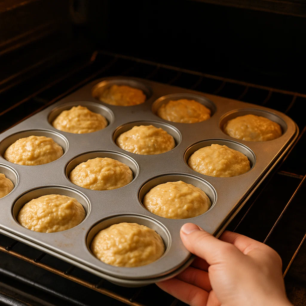 Scoop the muffin batter evenly into the prepared muffin tin, filling each cup about ¾ full. Bake in the preheated oven for 18-20 minutes, or until a toothpick inserted into the center comes out clean. The tops should be golden brown and slightly firm to the touch.