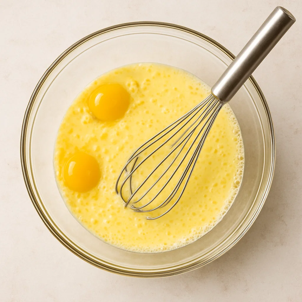 In a separate bowl, whisk the eggs, milk, and olive oil together until well combined. This mixture will help bind the dry ingredients together and create a moist muffin base.