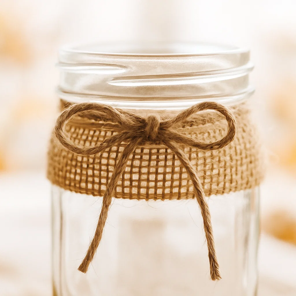 For a rustic touch, wrap twine or burlap ribbon around the top of the jar. You can secure the ribbon with a small knot or bow. This simple addition brings a cozy, farmhouse feel to your DIY candle holders.