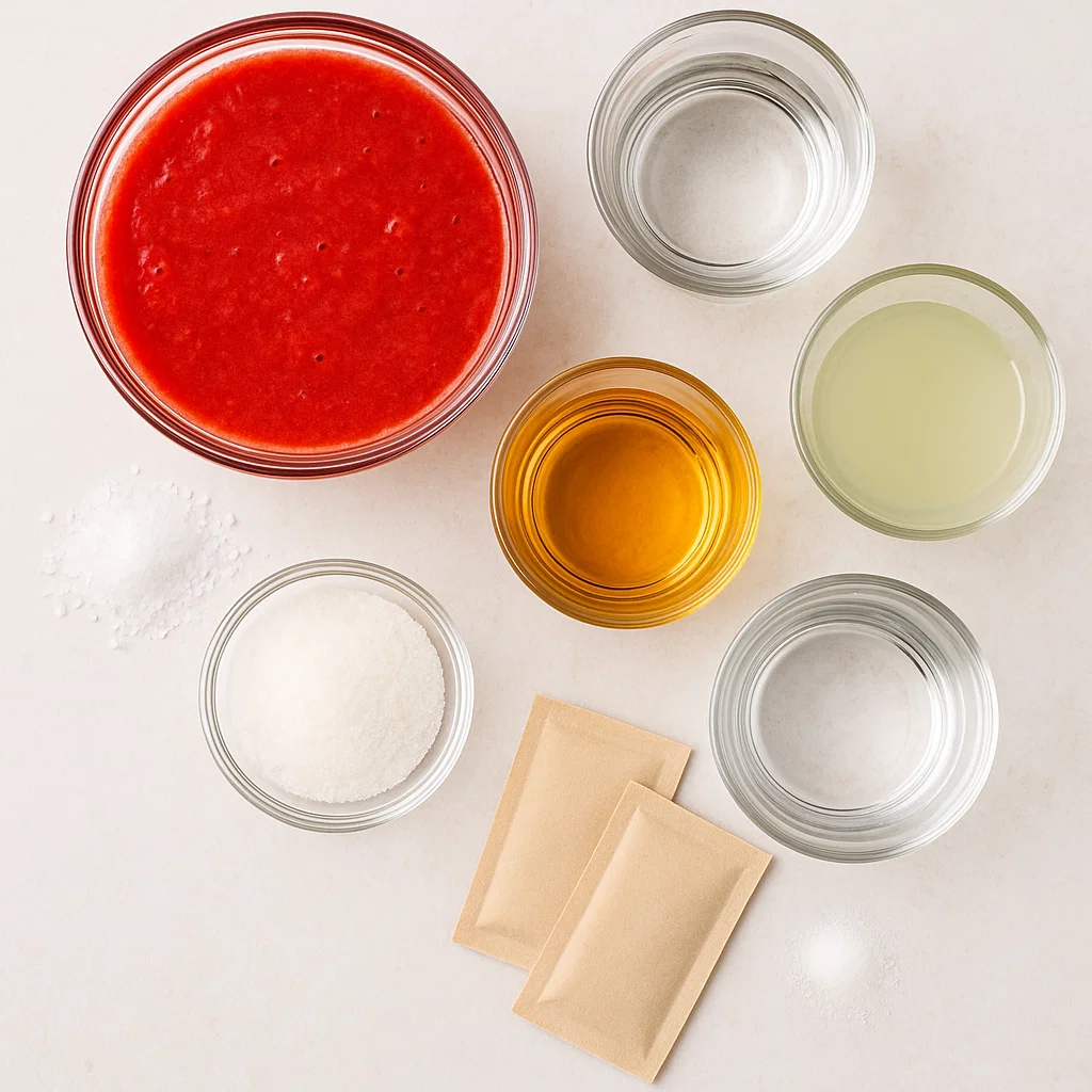 - 1 cup fresh strawberry puree (from about 10 medium strawberries)