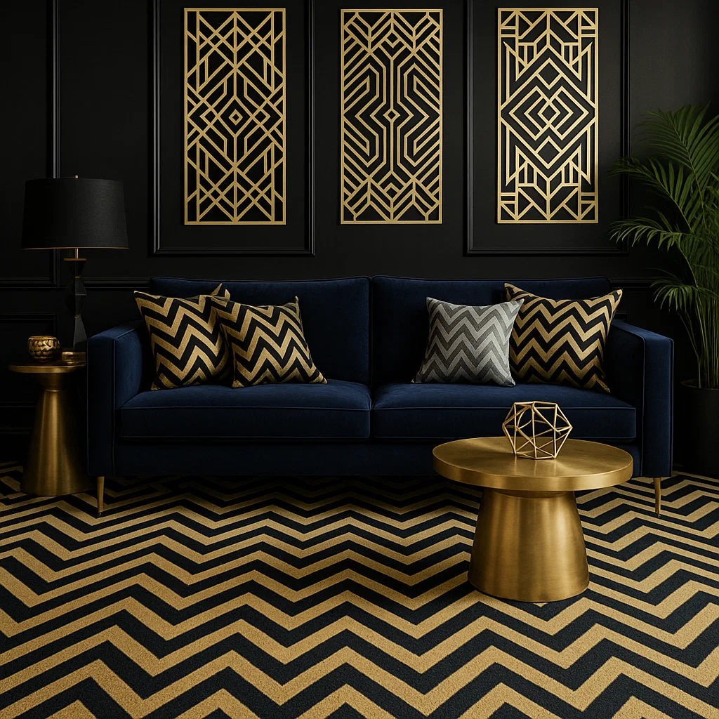 - Geometric Patterns: Art Deco loves bold shapes—think chevrons, zigzags, and sharp angles. Use these patterns on wallpaper, rugs, or even accent furniture.