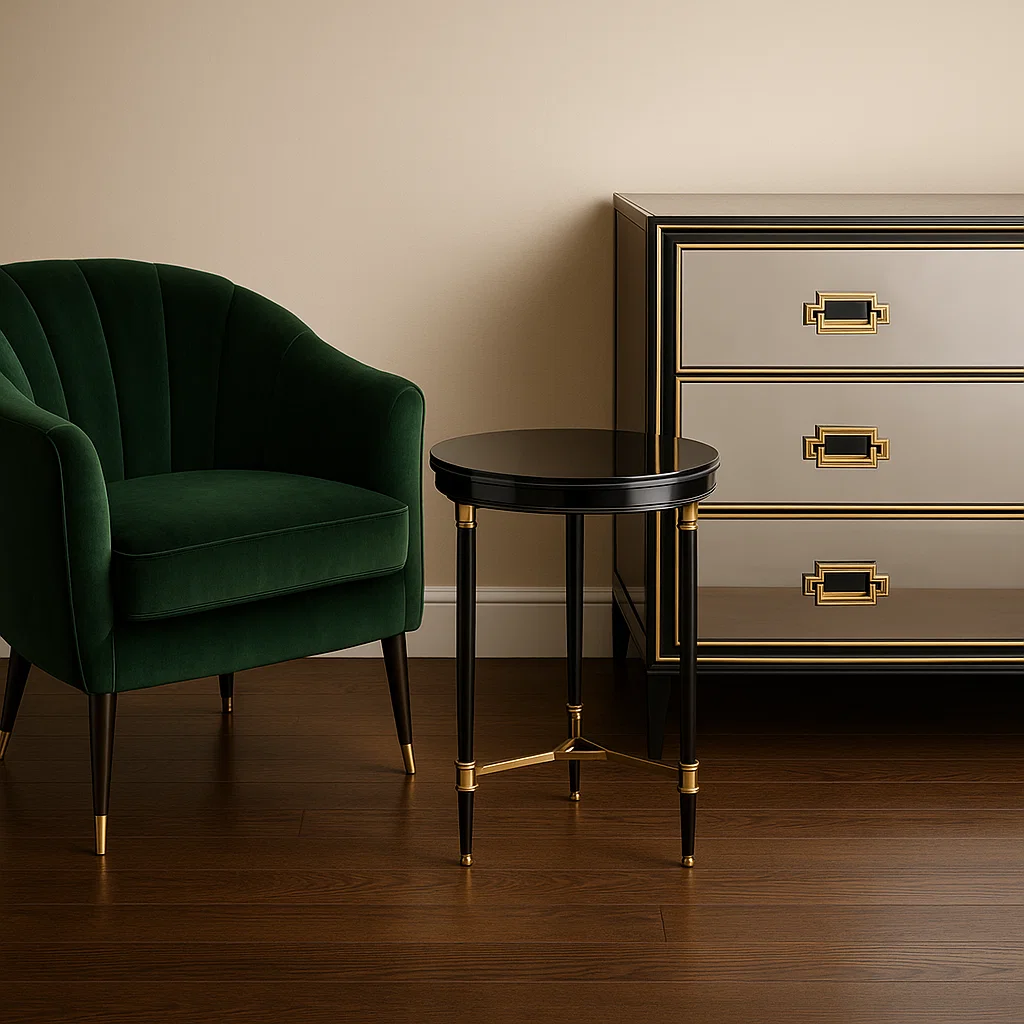 One of the easiest ways to add Art Deco glam is by incorporating statement furniture. Look for pieces that are both sleek and luxurious, such as velvet armchairs, lacquered side tables, or mirrored dressers. These pieces make a bold statement and set the tone for the rest of your room.
