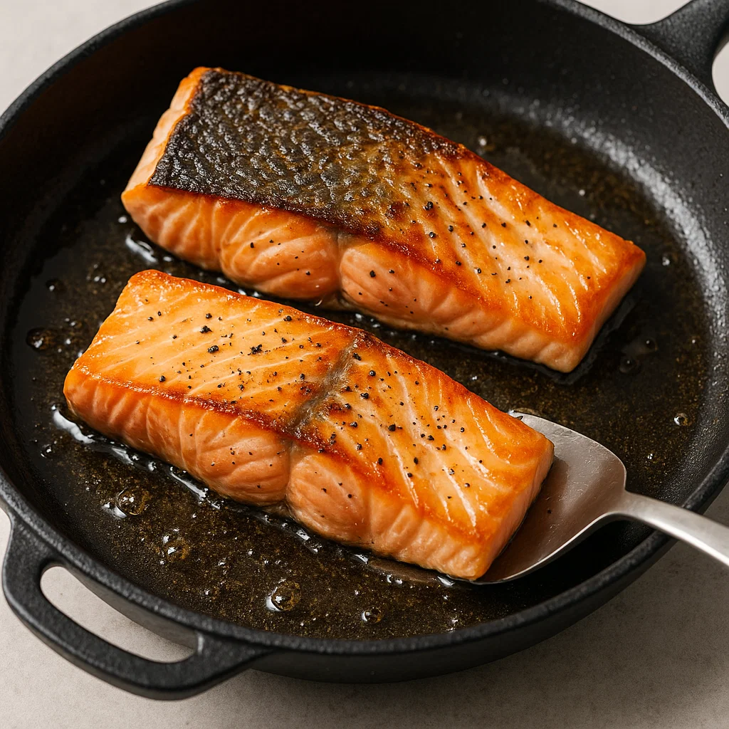 Flip the fillets and cook for another 2-3 minutes on the other side, or until your desired doneness is achieved. The salmon should be perfectly seared and juicy inside. At this point, we’ve spent about 5-7 minutes—and the magic has already started!